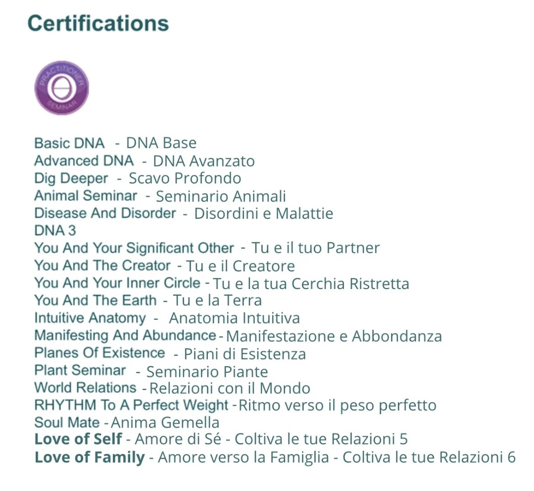 Comincio così una serie di percorsi volti a scoprire come rivelare quello che sta dietro l’immagine per arrivare a vedersi, rivelare ed esprimere i propri potenziali e andare verso la propria consapevolezza: il ThetaHealing®, l’Alchimia Spirituale, la Sacred Alchemy®, la guarigione energetica, Aura-Soma®, la Riconnessione con il Tutto,, la Numerologia, la guarigione attraverso il Campo Quantico e i Campi di Torsione e il Suono come Guarigione, sono le modalità che considero più ‘illuminanti e trasformanti’ di quelle fatte