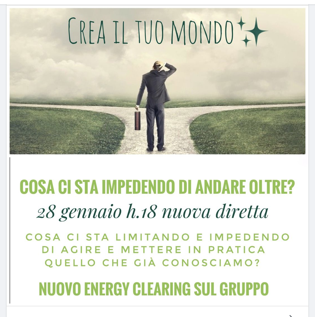 Il modo più veloce per provare subito il lavoro su di sé. Dirette Live, alcune anche gratuite, dove sperimentare subito la tecnica ricevendo il lavoro energetico. Differenti argomenti, spesso associati alle tematiche più comuni che ci possono bloccare o limitare dal creare la vita che vorremmo. Anche le Practice Night, o gli incontri V.I.P. Pass Prosperità e Abbondanza (non ancora cominciate ma le troverete nella nostra