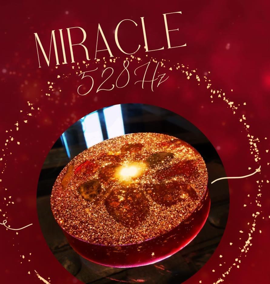 L’ho chiamata Miracle 528hz, proprio per la serie di info che sono arrivate in assonanza con questa frequenza di solfeggio e per l’uso delle vibrazioni sonore come parte degli ‘ingredienti’ da caricare al di là di quelli fisicamente presenti come sostanze nel suo composto.