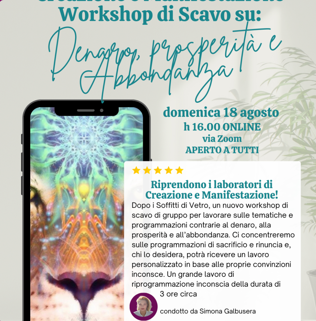 💫 Dopo i Soffitti di Vetro, un nuovo workshop di scavo di gruppo per lavorare sulle tematiche e programmazioni contrarie al denaro, alla prosperità e all’abbondanza.